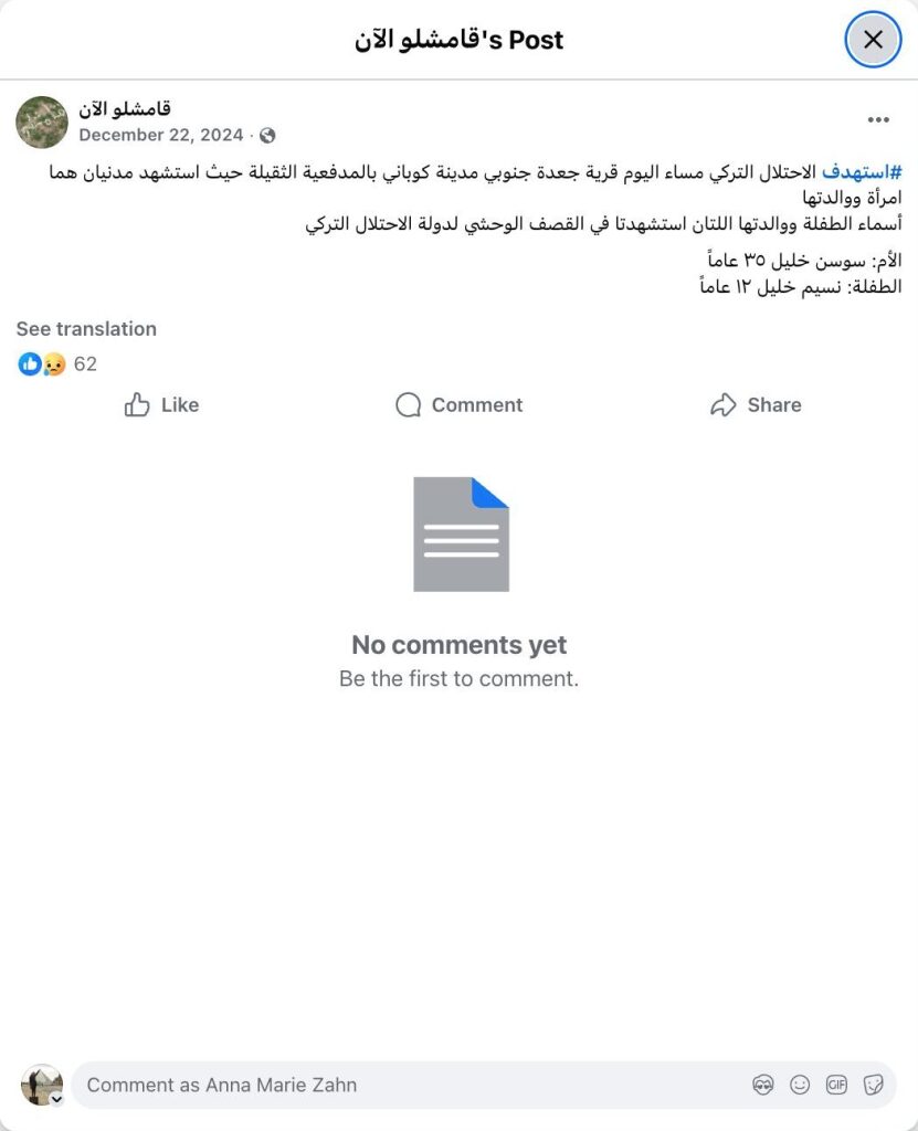 Archive URL: https://airwars.org/source/www-facebook-com-%d9%82%d8%a7%d9%85%d8%b4%d9%84%d9%88-%d8%a7%d9%84%d8%a2%d9%86-pfbid046oevygjejfxkylucwg3jkc7xrj5gwfavbuykhvwmjsmnn13u87dcwfuhy8vz9xel-2024-12-22-170000/