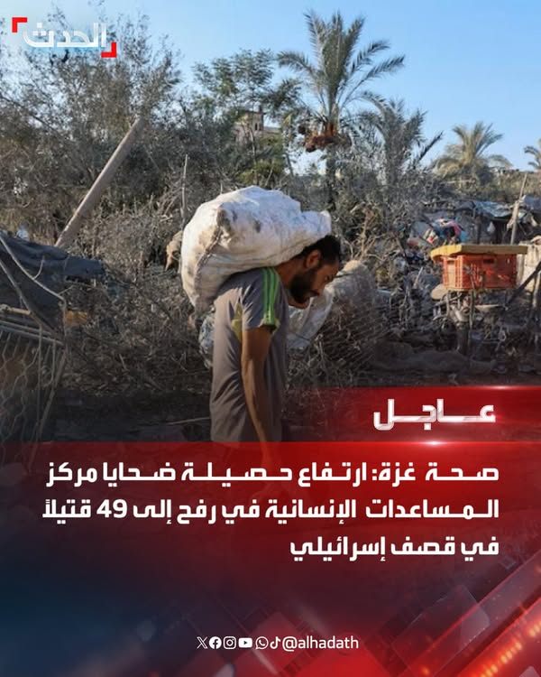 Gaza Health: The death toll from an Israeli airstrike at the Rafah humanitarian aid center has risen to 49. #Rafah #Gaza #AlHadath