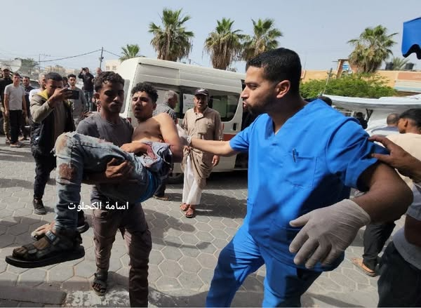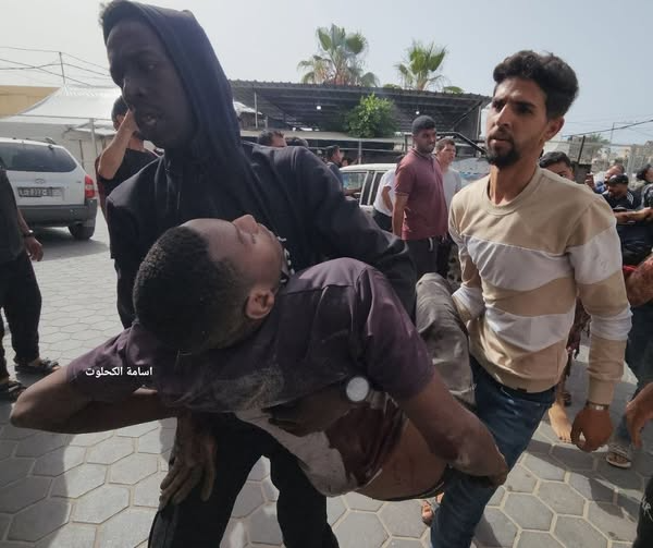 9 شهداء وعدد من الجرحى جراء قصف الاحتلال بركس سفينة الخير، جنوب مدينة دير البلح وسط قطاع غزّة.