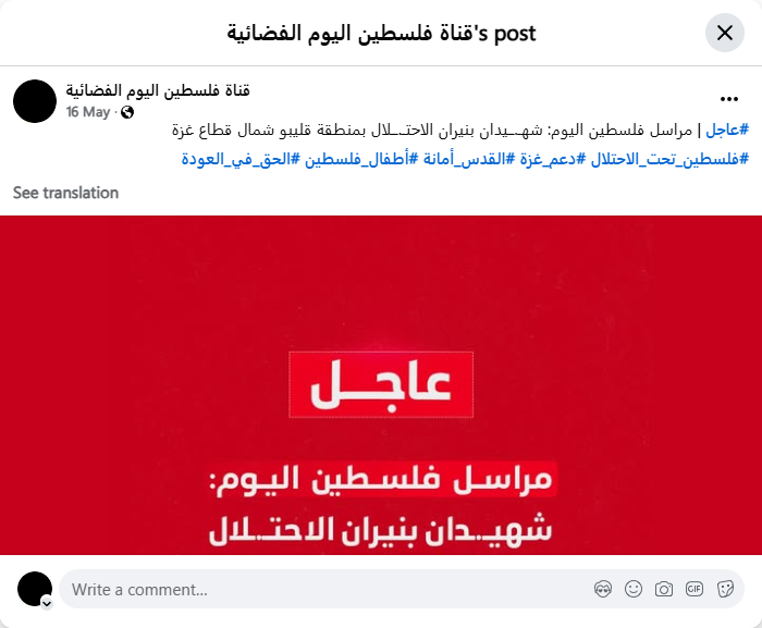 Translated Author: Palestine Today TV Channel