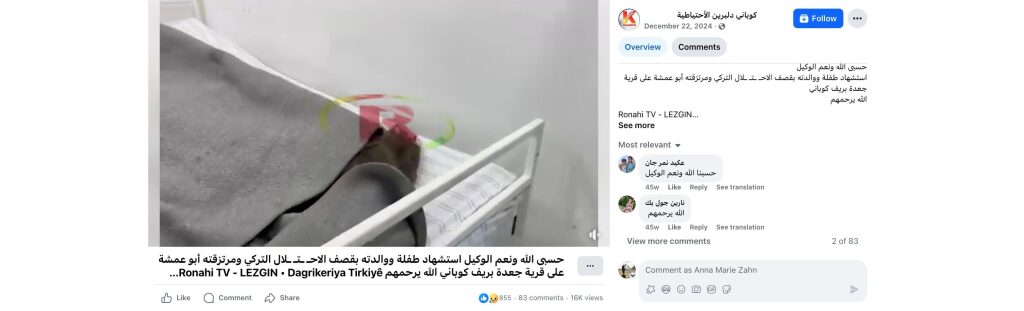 • A child and her mother were martyred in a bombing by the Turkish occupation forces ...