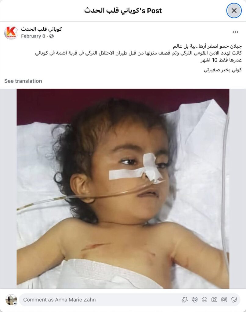 Jilan Hamo, the youngest terrorist in the world, was a threat to Turkish national security. Her home in the village of Ashma in Kobani was bombed by Turkish occupation forces. She was only 10 months old. Be well, my little one.