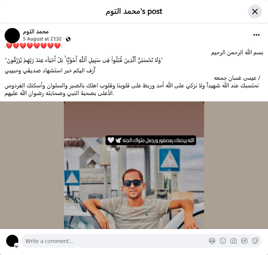 Archive URL: https://airwars.org/source/www-facebook-com-%d9%85%d8%ad%d9%85%d8%af-%d8%a7%d9%84%d8%aa%d9%88%d9%85-pfbid02sybmcgtwtncywshbvqkie2fe92f2niewvbhrfrtfpv2ywzhfhdqkzfjqomtmxq2el-2025-08-05-193200/