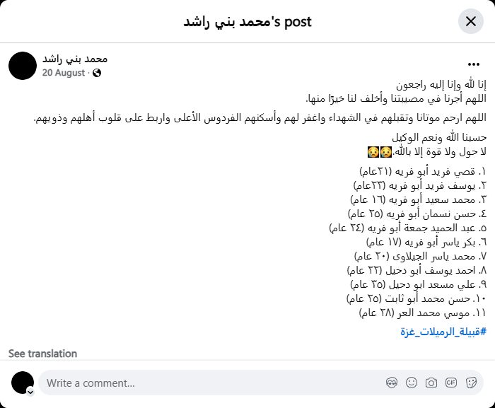 O God, have mercy on our dead and accept them among the martyrs, forgive them, and grant them the highest Paradise, and comfort the hearts of their families and loved ones.