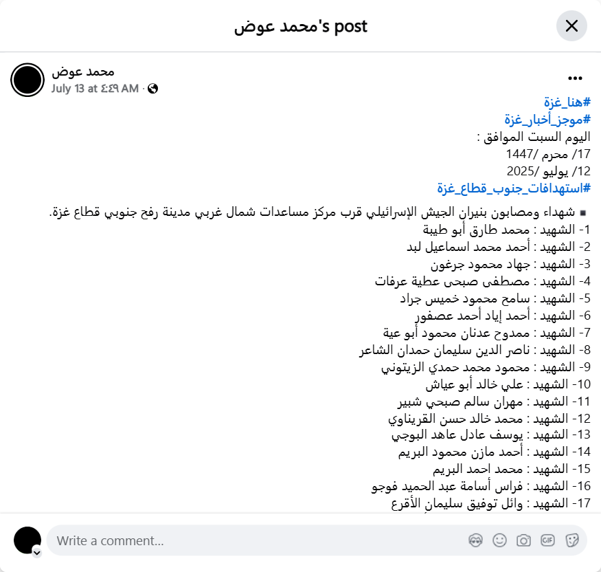 4 martyrs and wounded in an Israeli bombing that targeted a tent in the Manasra camp east of Al-Aqsa Martyrs Hospital in Deir al-Balah in the central Gaza Strip. 67- Martyr: Suhaib Mahmoud Al-Qarnawi and his wife 68- Martyr: Hadeel Al-War and their son 69- Child martyr: Rawad Suhaib Al-Qarnawi 70- Child martyr: Mahmoud Suhaib Al-Qarnawi