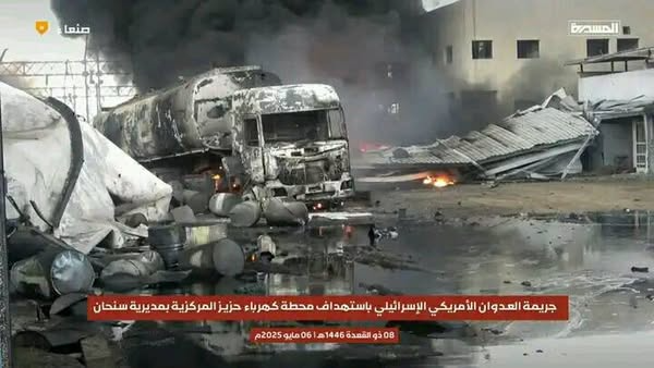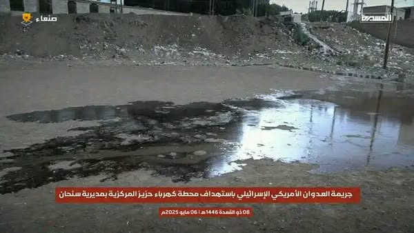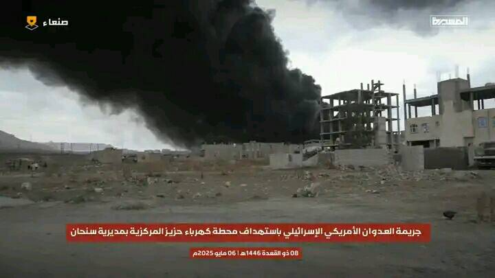 صور جريمة العدوان الإسرائيلي باستهداف محطة كهرباء #حزيز المركزية بمديرية سنحان في #صنعاء