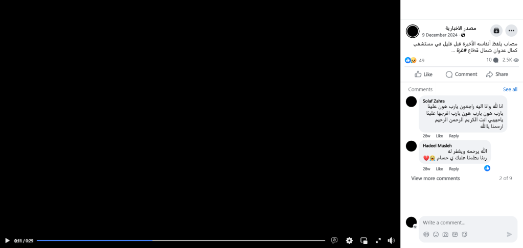 An injured person breathed his last a short while ago in Kamal Adwan Hospital, north of the #Gaza Strip.