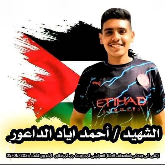 الحبيب / أحمد اياد الداعور في امان الله حبيبي ...نجل الاخ والصديق الغالي على قلبي عديلي/ اياد الداعور (ابو محمد )مبتسم دائما. مطيع للجميع مساعد خدوم كان ذاهب لأول يوم عمل في مطعم سلمان حيث الاستهداف الغادر الذي راح ضحيته مجموعة ابرياء كأحمد كان حسب رواية الجميع غير طبيعي كأنه مودع يمازح الجميع بكل حب وود معروف عنه الخجل الكلمة المشهورة للجميع اولاد اياد مربيين ومؤدبين احمد استشهد في وقفة عرفة وهو صايم احمد مش خسارة في ربنا ...ما رأيته في وجه ابوه وامه لم يكن صبر فقط بل صبر وصدمة وضياع ولا شعور. من هول المصيبة فالمصيبة كبيرة لافراد اسرته فلكل شخص منهم حكاية قبل ساعات مع احمد ....رحمك الله يا حبيب القلب وصبر الله ابوك وامك واخوتك جميعا .....