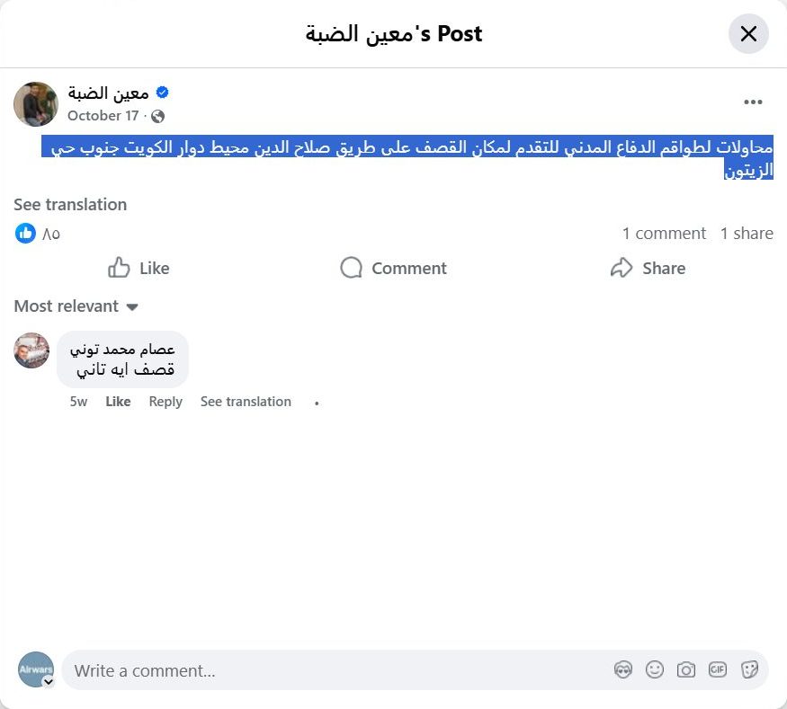 Civil defense teams are attempting to reach the site of the bombing on Salah al-Din Road, near Kuwait Roundabout, south of the Zeitoun neighborhood.