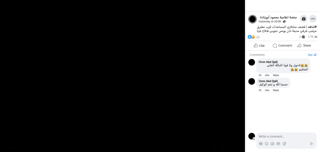 #شاهد | قصف منتظري المساعدات قرب مفترق مرتجى شرقي مدينة خان يونس جنوبي قطاع غزة.