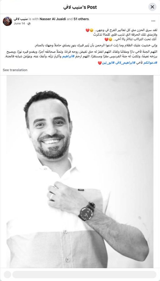 O God, grant my brother Paradise as his abode, his resting place, and his final meeting place. O God, forgive him until his soul overflows with joy, his record is filled with reward, his grave becomes a light, his intermediate state becomes bliss, and grant him Paradise as his final resting place. O God, have mercy on #Ibrahim, honor his arrival, pardon him, and compensate him for his youth with Paradise.