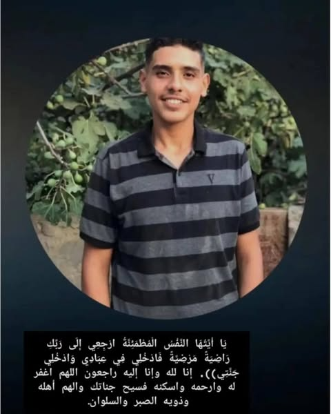 In the name of God, the Most Gracious, the Most Merciful. God Almighty said: And give good tidings to the patient, Who, when disaster strikes them, say, "Indeed we belong to God, and indeed to Him we will return." Those will have blessings from their Lord and mercy. And it is those who are the [rightly] guided. God Almighty is true. With hearts full of faith and souls content with God’s will and destiny, we announce to you the news of the martyrdom of my cousin, the young man (Ahmed Iyad Mohammed Al-Daour). We ask God Almighty to have mercy on his soul and forgive him, to grant him a place in His spacious gardens, and to inspire his family and relatives with patience and solace. May God give you patience, Uncle Abu Mohammed. To God we belong and to Him we shall return. We welcome our holidays with the loss of our loved ones. God is sufficient for us, and You are the best Disposer of affairs.