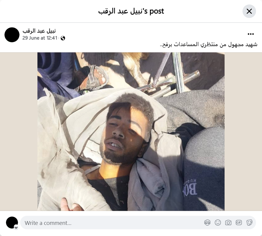 An unknown martyr among those waiting for aid in Rafah.. All reactions: 252252 16 comments 15 shares Like Comment Share
