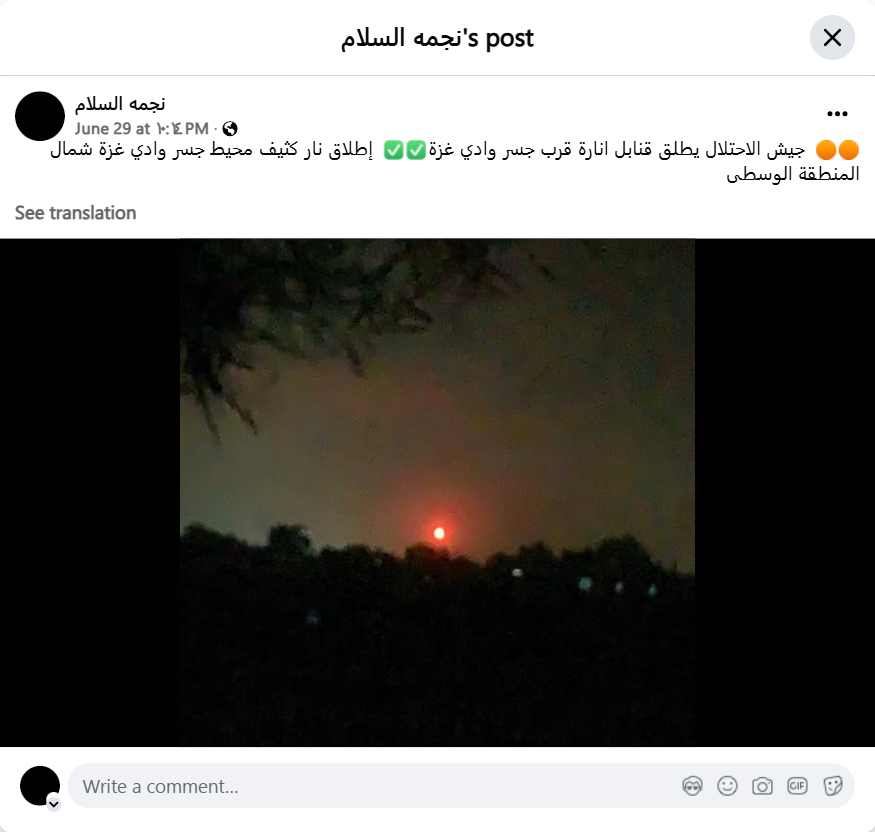 جيش الاحتلال يطلق قنابل انارة قرب جسر وادي غزة إطلاق نار كثيف محيط جسر وادي غزة شمال المنطقة الوسطى