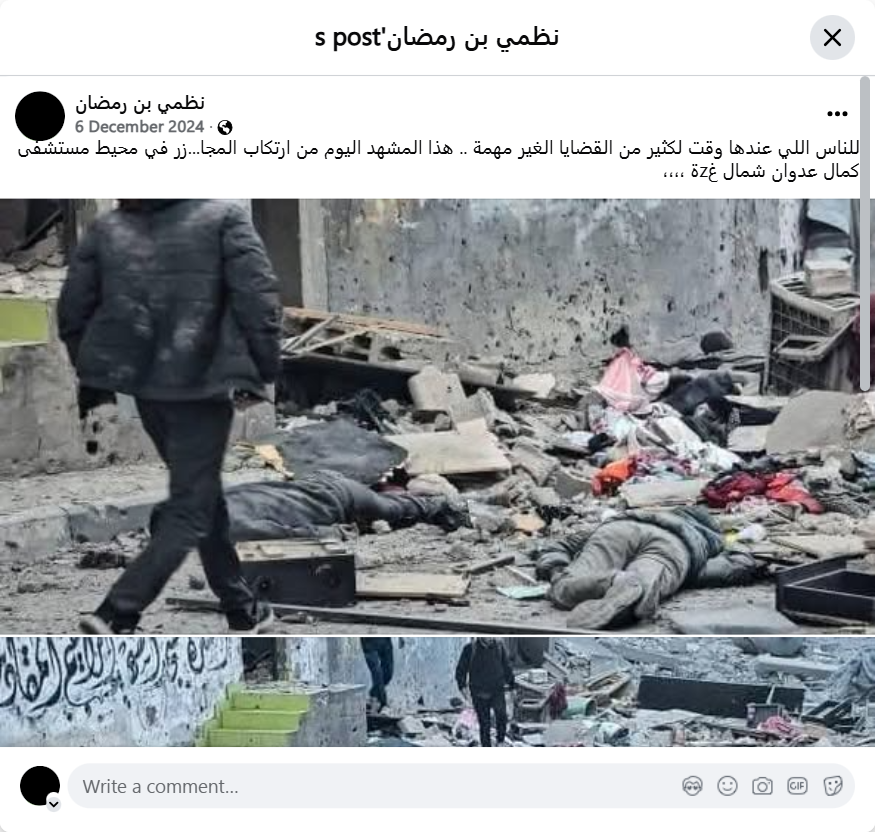 للناس اللي عندها وقت لكثير من القضايا الغير مهمة .. هذا المشهد اليوم من ارتكاب المجا...زر في محيط مستشفى كمال عدوان شمال غzة ،،،،