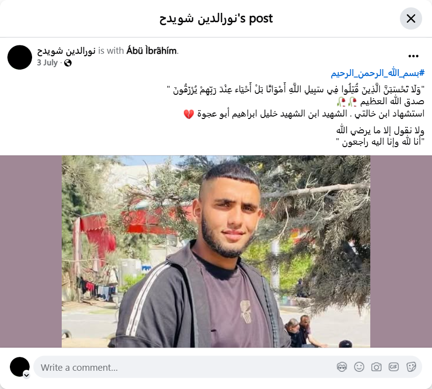 استشهاد ابن خالتي . الشهيد ابن الشهيد خليل ابراهيم أبو عجوة