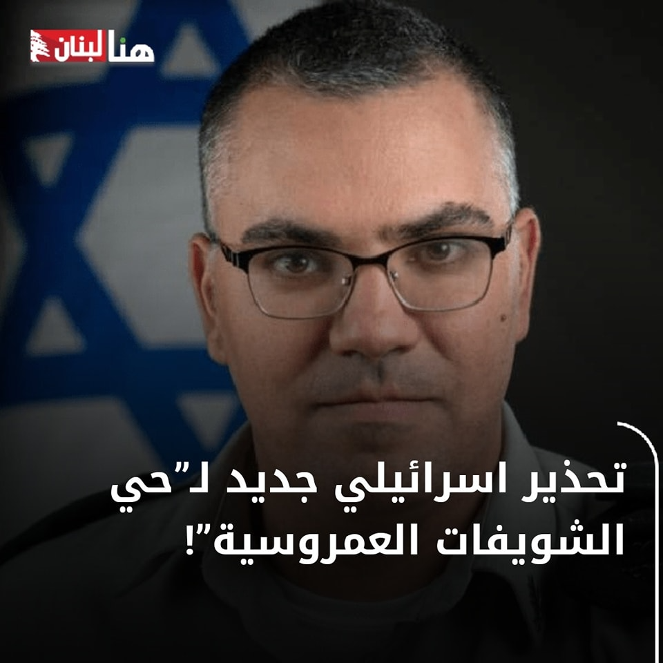 كتب المتحدث باسم الجيش الإسرائيلي أفيخاي أدرعي عبر حسابه “إكس”:“انذار عاجل إلى سكان الضاحية الجنوبية وتحديدًا المتواجدين في المبنى المحدد في الخارطة في حي شويفات العمروسيةأنتم متواجدون بالقرب من منشآت ومصالح تابعة للحزب حيث سيعمل ضدها جيش الدفاع على مدى الزمني القريبمن أجل سلامتكم وسلامة أبناء عائلتكم عليكم اخلاء هذا المبنى والمباني المجاورة فورًا والابتعاد عنها لمسافة لا تقل عن 500 متر”.