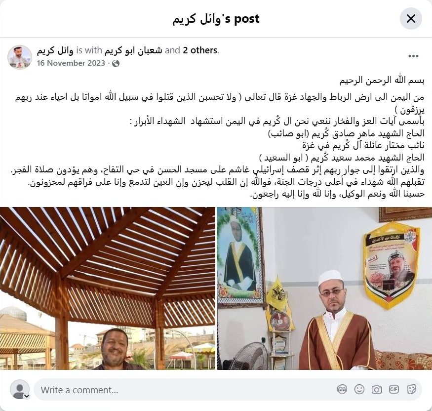 With the highest expressions of honor and pride, we, the Al-Karim family in Yemen, mourn the martyrdom of the righteous martyrs: