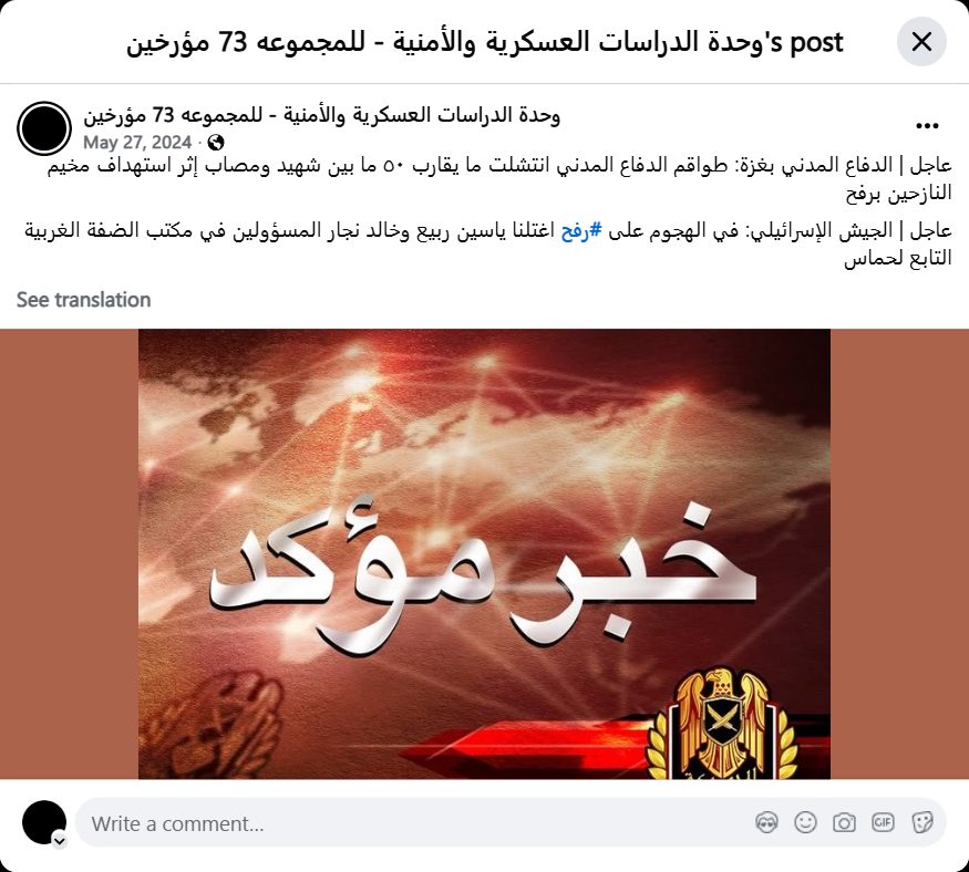 Archive URL: https://airwars.org/source/www-facebook-com-%d9%88%d8%ad%d8%af%d8%a9-%d8%a7%d9%84%d8%af%d8%b1%d8%a7%d8%b3%d8%a7%d8%aa-%d8%a7%d9%84%d8%b9%d8%b3%d9%83%d8%b1%d9%8a%d8%a9-%d9%88%d8%a7%d9%84%d8%a3%d9%85%d9%86%d9%8a%d8%a9-%d9%84/