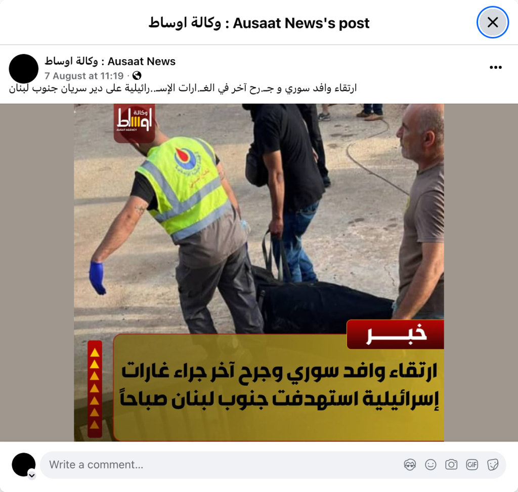 ارتقاء وافد سوري و جـ.رح آخر في الغـ.ارات الإسـ..رائيلية على دير سريان جنوب لبنان