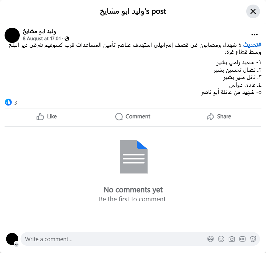 #Update: 5 martyrs and wounded in an Israeli bombardment targeting aid workers near Kissufim, east of Deir al-Balah, central Gaza Strip: