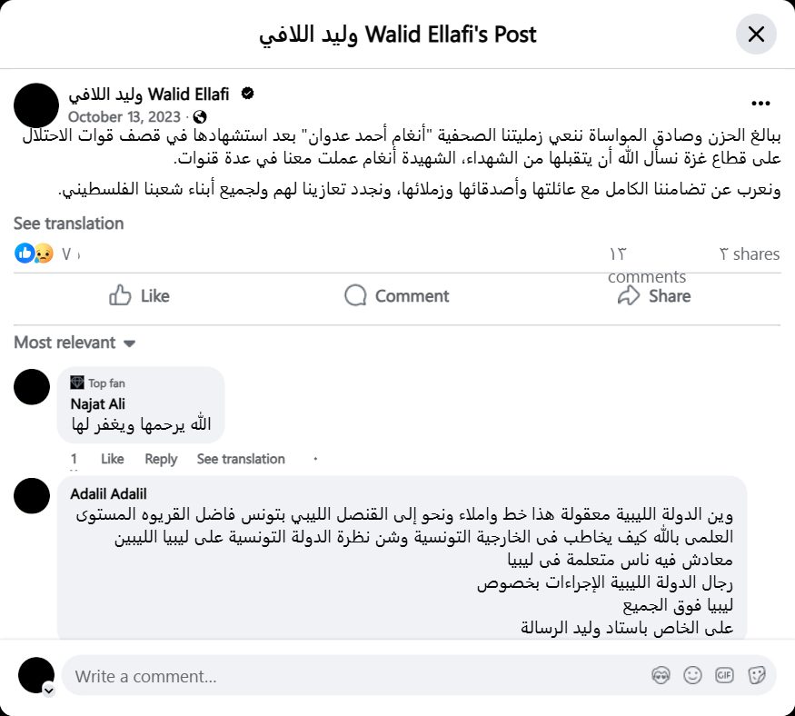 ببالغ الحزن وصادق المواساة ننعي زمليتنا الصحفية "أنغام أحمد عدوان" بعد استشهادها في قصف قوات الاحتلال على قطاع غزة نسأل الله أن يتقبلها من الشهداء، الشهيدة أنغام عملت معنا في عدة قنوات.
