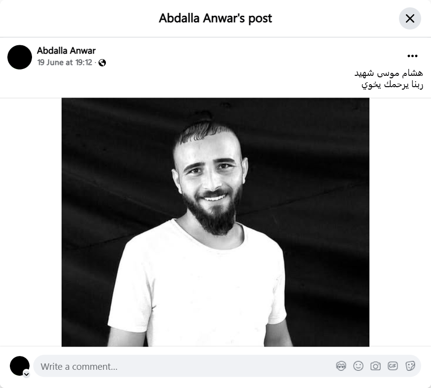 Hisham Moussa is a martyr. May God have mercy on you, my brother.