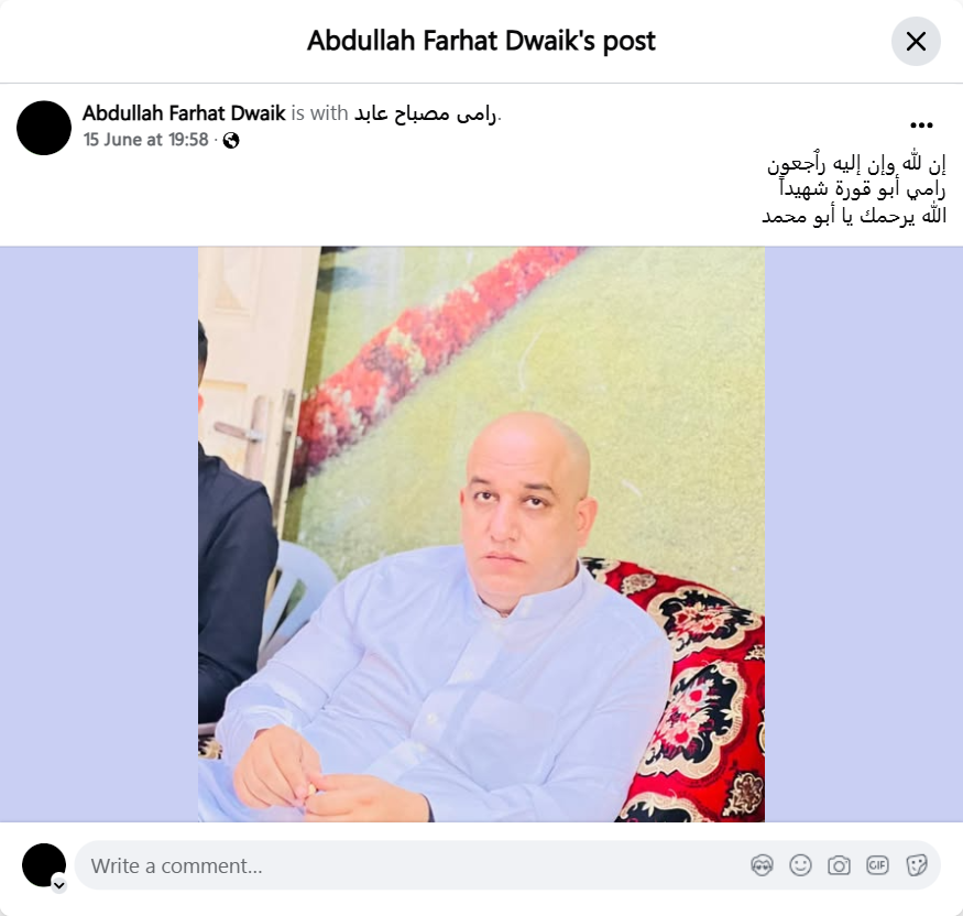 To God we belong and to Him we shall return. Rami Abu Qura is a martyr. May God have mercy on you, Abu Muhammad.