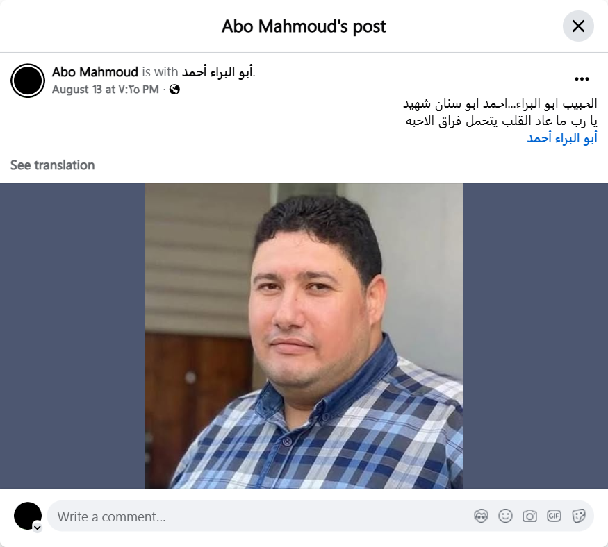 Dear Abu Al-Baraa...Ahmed Abu Sinan is a martyr