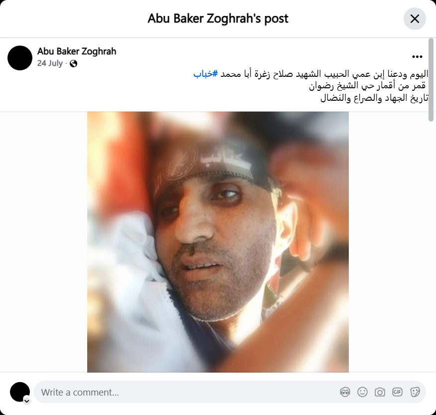 اليوم ودعنا إبن عمي الحبيب الشهيد صلاح زغرة أبا محمد #خباب