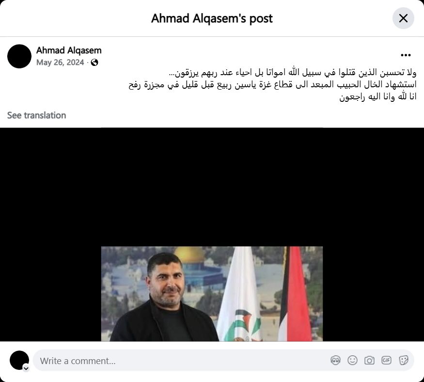 Archive URL: https://airwars.org/source/www-facebook-com-ahmad-alqasem-pfbid02trqog1qqfd62g4jjt529o9x9ucib2sb9mywegz1oxdlnturt82fw8u5tz6tewc1il-2024-05-26-090000/