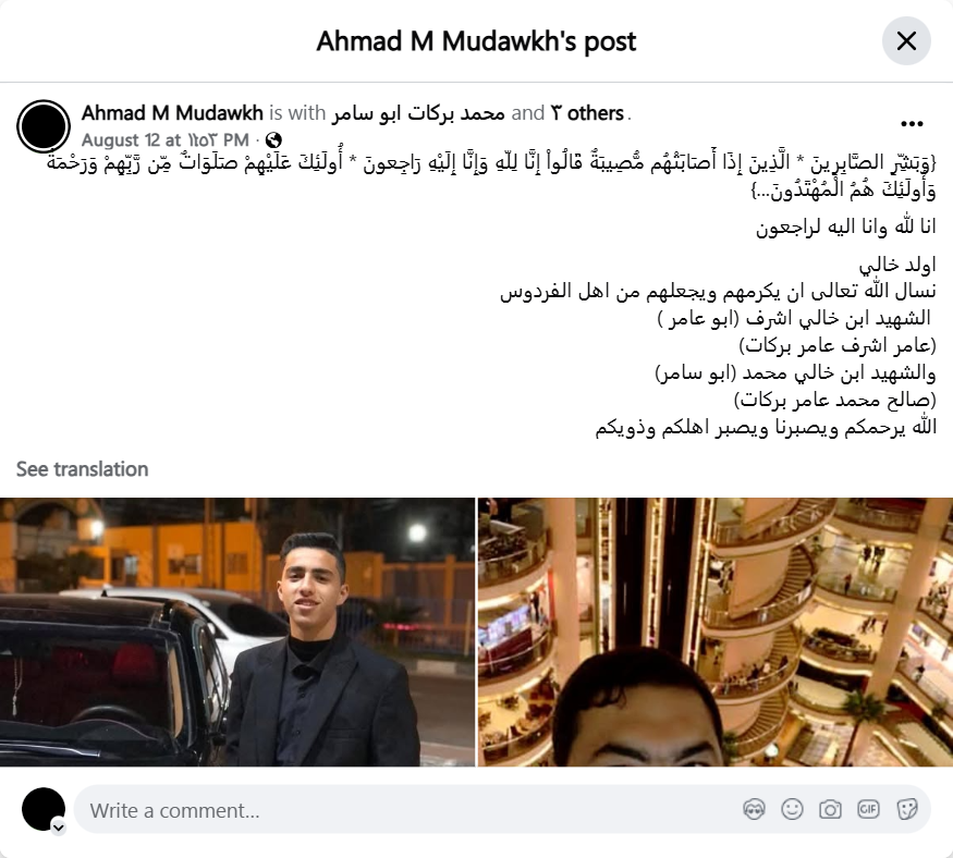 And my maternal uncle's martyr Muhammad (Abu Samer)