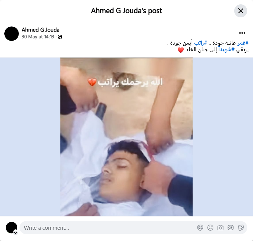 #Qamar of the Joudeh family... #Rateb Ayman Joudeh. Ascends as a #martyr to the eternal gardens.
