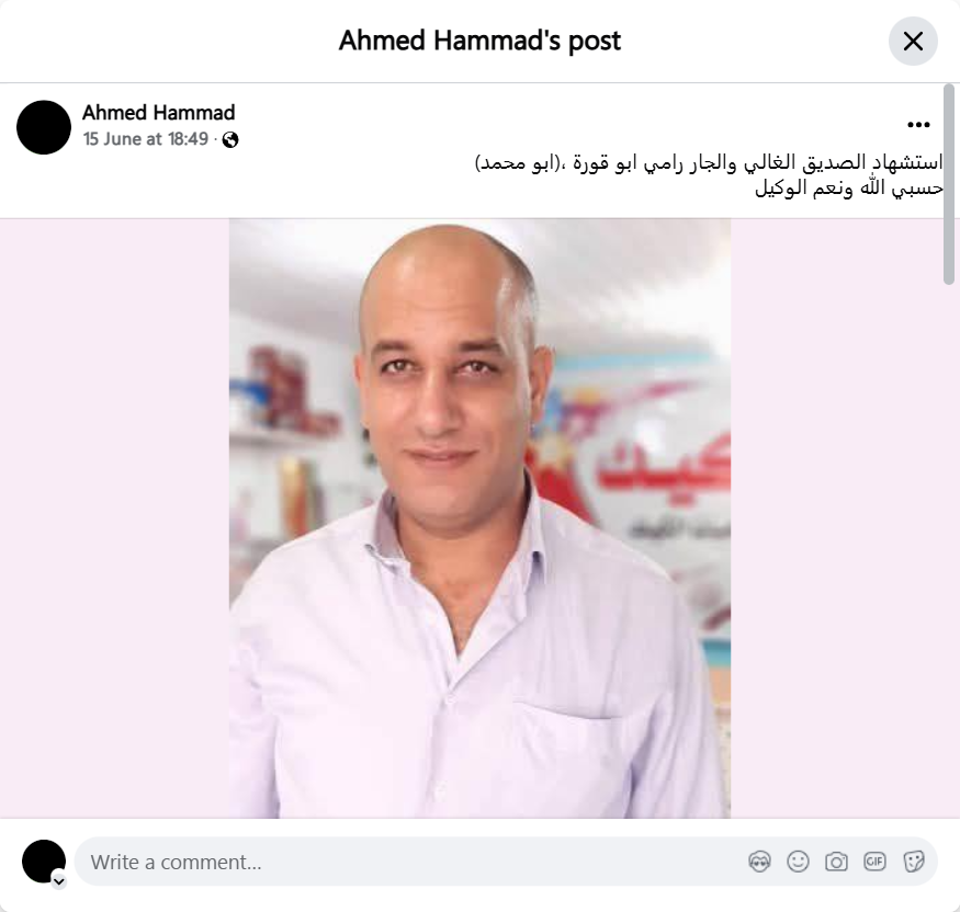 استشهاد الصديق الغالي والجار رامي ابو قورة ،(ابو محمد)حسبي الله ونعم الوكيل