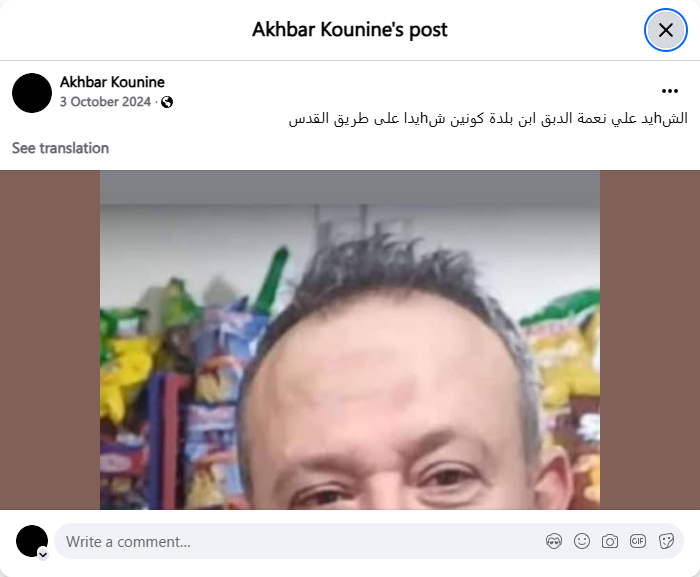 الشhيد علي نعمة الدبق ابن بلدة كونين شhيدا على طريق القدس