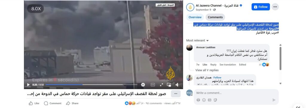 صور لحظة القصف الإسرائيلي على مقر تواجد قيادات حركة حماس في #الدوحة من إحدى كاميرات المراقبة