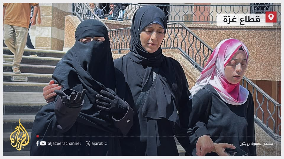 #Photo of Dr. Alaa Al-Najjar (on the left), who was shocked by the martyrdom of 9 of her children when occupation aircraft targeted her home in Khan Yunis, south of the Gaza Strip.