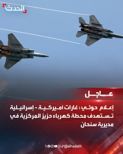 Houthi media: US-Israeli raids target Haiz central power station in Sanhan district