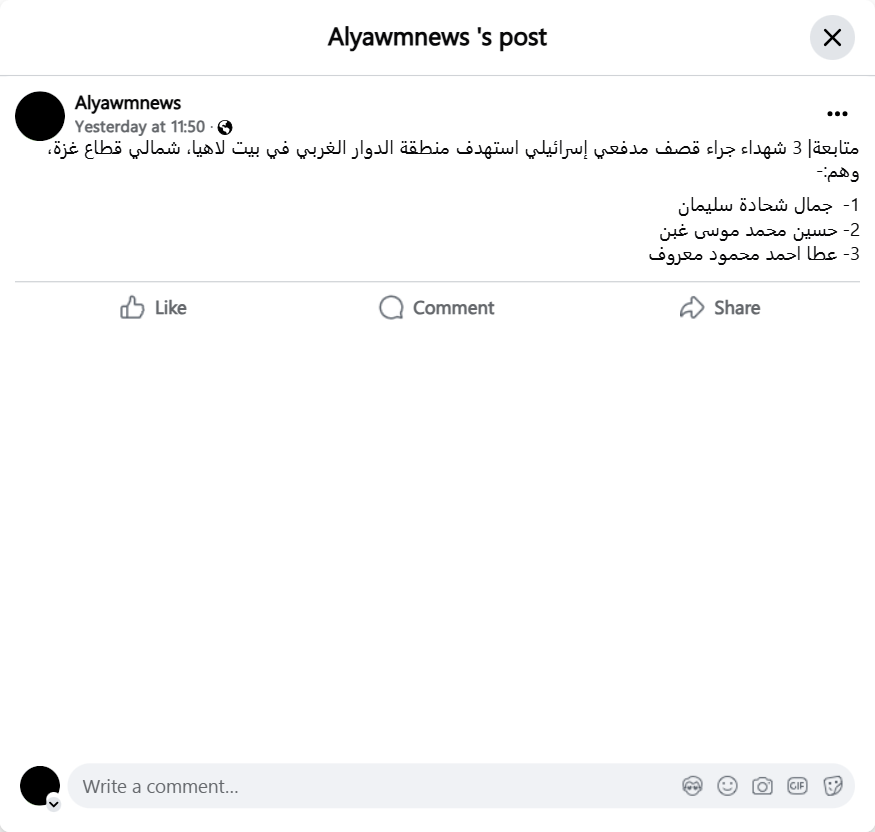 Archive URL: https://airwars.org/source/www-facebook-com-alyawmnews-pfbid02meak71nmneketacuqtzq3f7mba9yfqg7ssvvgkyeftzumskyvcfuesupzjurydtsl-2025-05-19-095000/