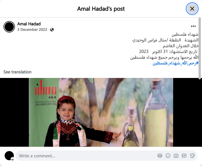 الله يرحمها ويرحم جميع شهداء فلسطين