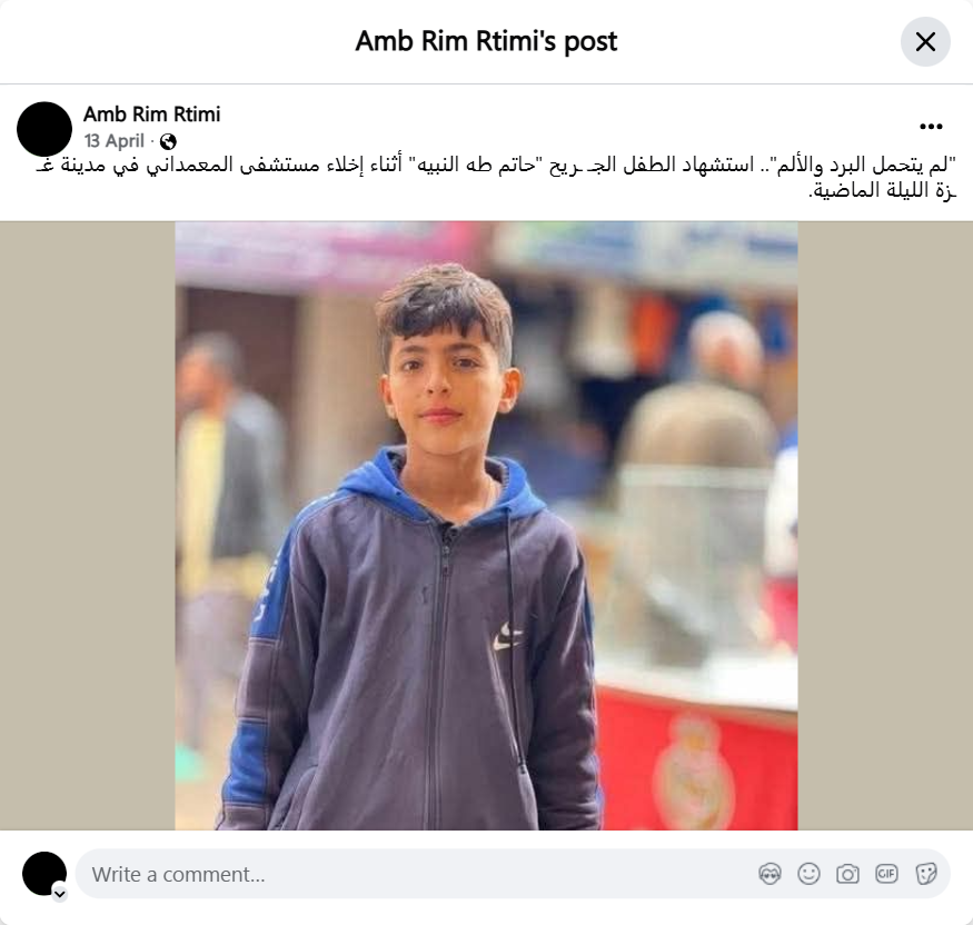 "لم يتحمل البرد والألم".. استشهاد الطفل الجـ ـريح "حاتم طه النبيه" أثناء إخلاء مستشفى المعمداني في مدينة غـ ـزة الليلة الماضية.