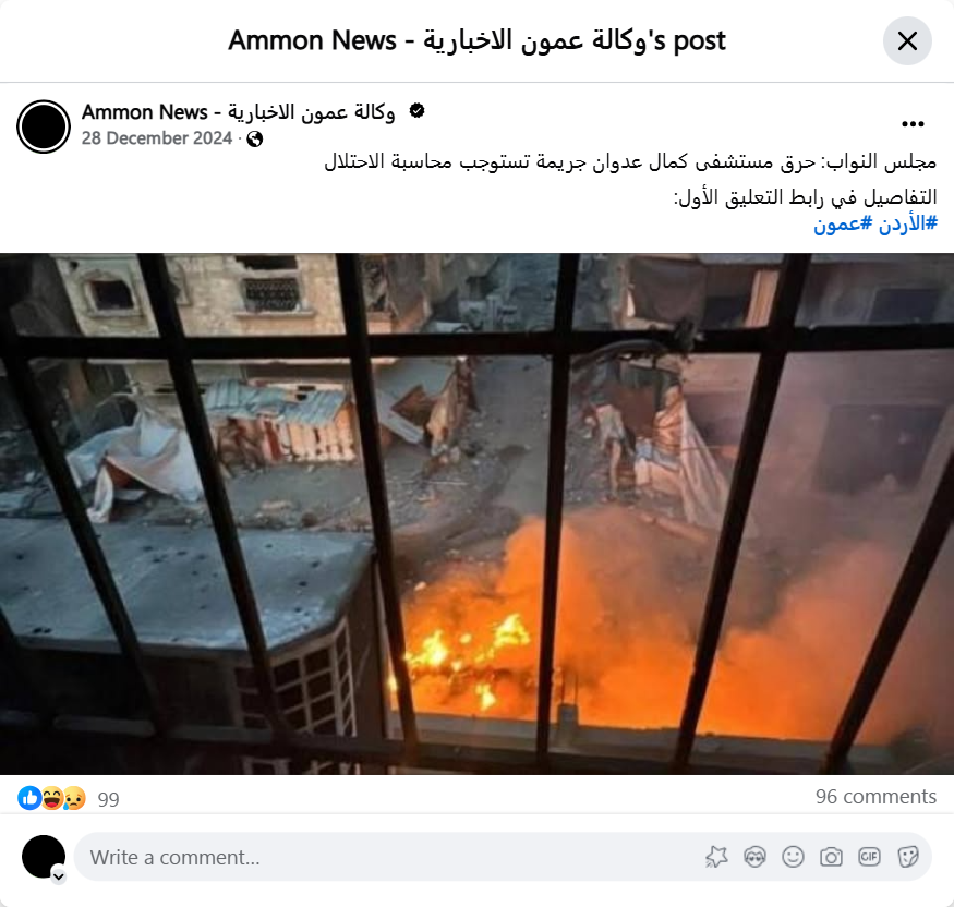 House of Representatives: Burning Kamal Adwan Hospital is a crime that requires holding the occupation accountable. Details in the link to the first comment: #Jordan #Ammon