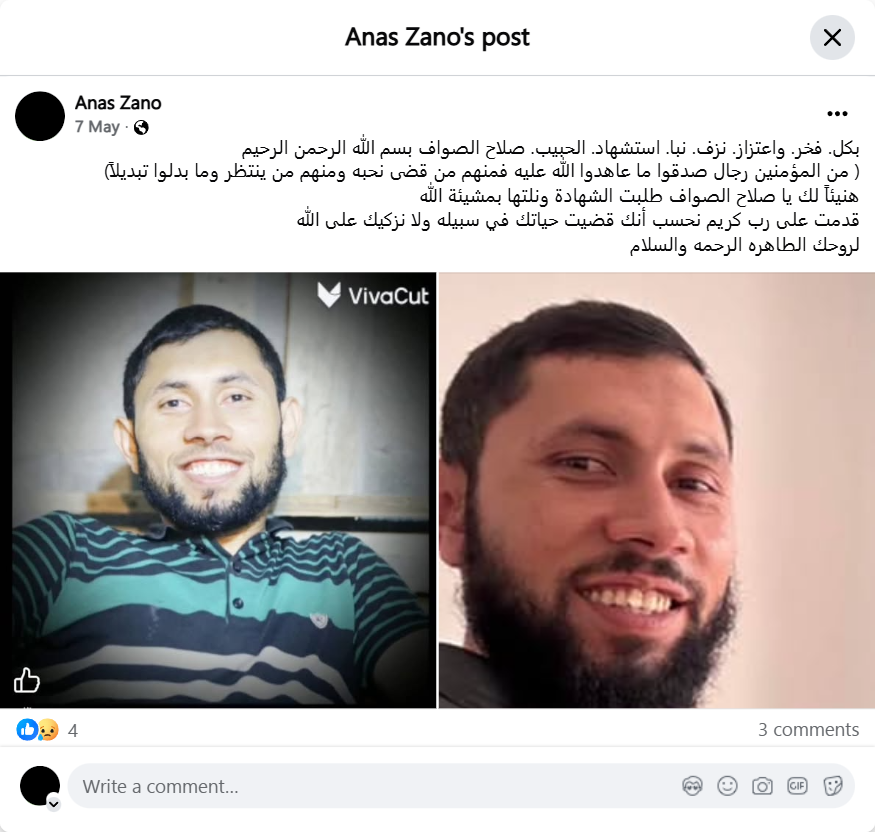 Congratulations, Salah Al-Sawaf. You sought martyrdom and attained it, God willing.