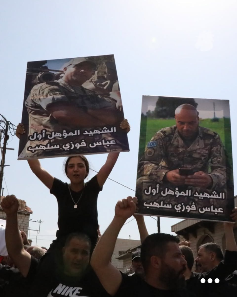 وشيعت بلدة رياق البقاعية الشهيد عباس سلهب، وحمل والده نعشه وسط حشد كبير من الناس.