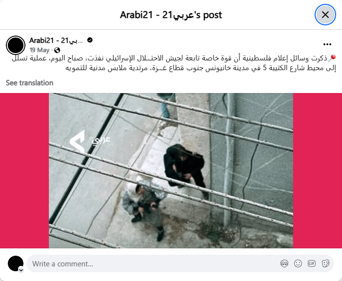 Palestinian media reported that a special force of the Israeli occupation army carried out an infiltration operation this morning in the vicinity of Battalion 5 Street in Khan Yunis, south of the Gaza Strip, wearing civilian clothes for camouflage.