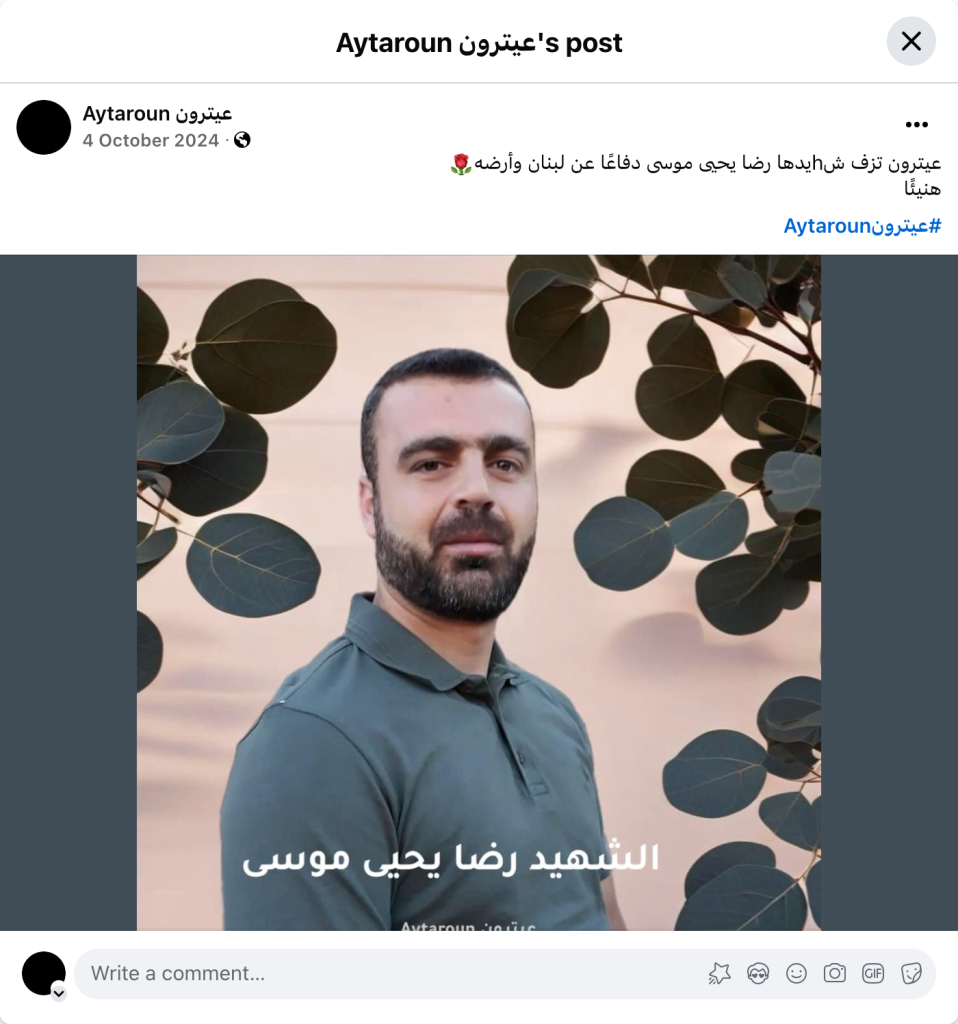 Aitaroun bids farewell to its martyr, Reda Yahya Moussa, who defended Lebanon and its land. Congratulations! #Aitaroun
