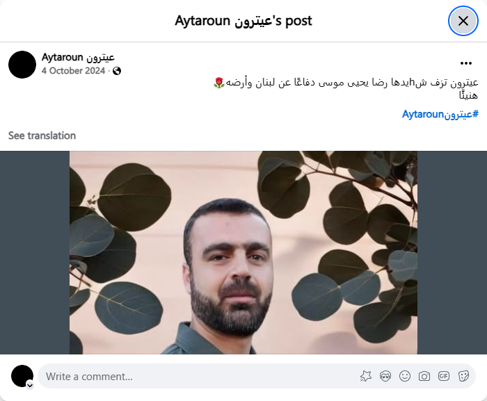 Aitaroun bids farewell to its martyr, Reda Yahya Moussa, who defended Lebanon and its land. Congratulations! #Aitaroun