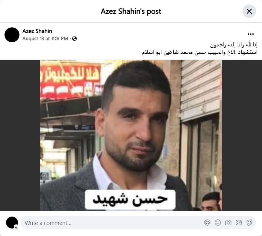 Martyrdom of our brother and beloved Hassan Muhammad Shaheen Abu Islam.