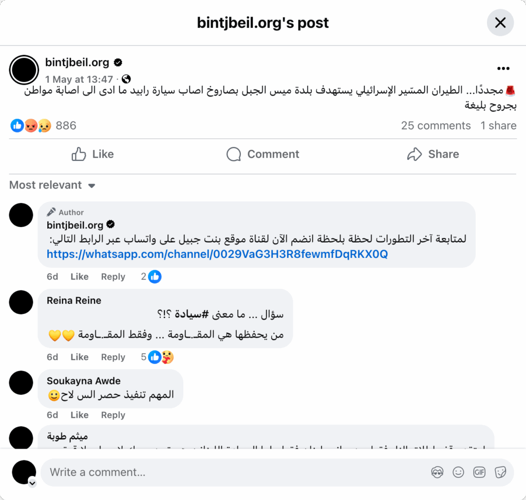 Once again... Israeli drones targeted the town of Mays al-Jabal with a missile that hit a Rapid car, seriously wounding a citizen.