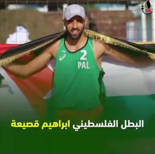 Today we lost a true Palestinian star, the hero Ibrahim Qasi'a, captain of the Palestinian national beach volleyball team. Last year, he won the bronze medal for the team in the West Asian Championship and was the top scorer in the entire tournament. Israel killed him today in northern Gaza...